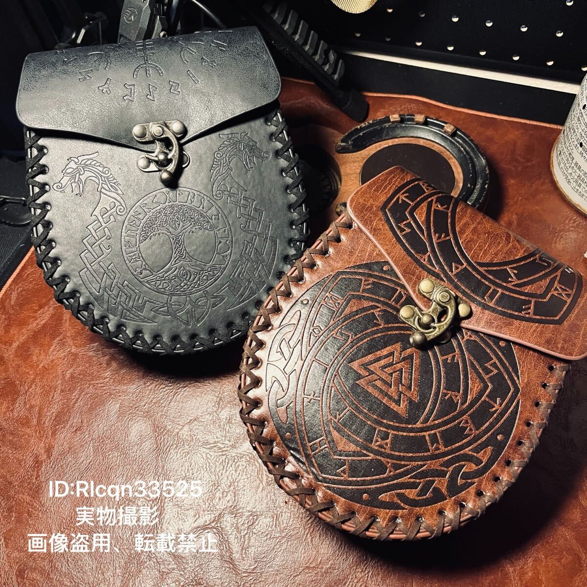 - 2点セット アウトドア用 小物收納ケース 革袋 革収納 小物入れ キャンプ 野外登山 18cmx15cmx4cm 130g