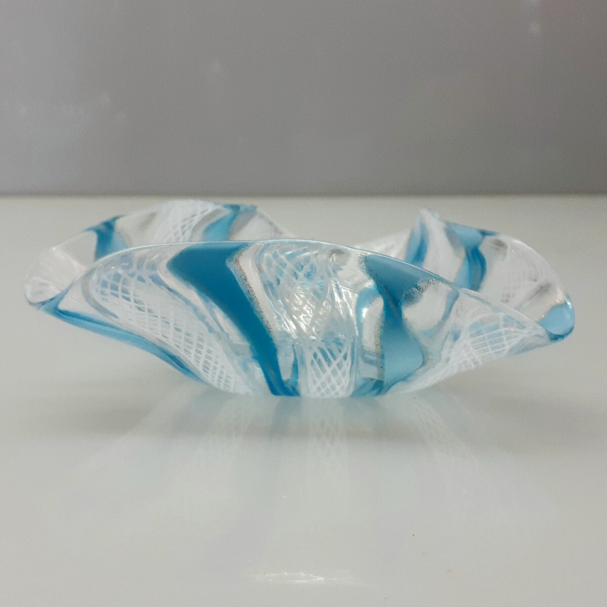 - 【MURANO】ITALY★ムラノ 水色リボン レース 皿 小鉢 ★ヴェネチアン グラス ムラーノ ベネチアン ガラス