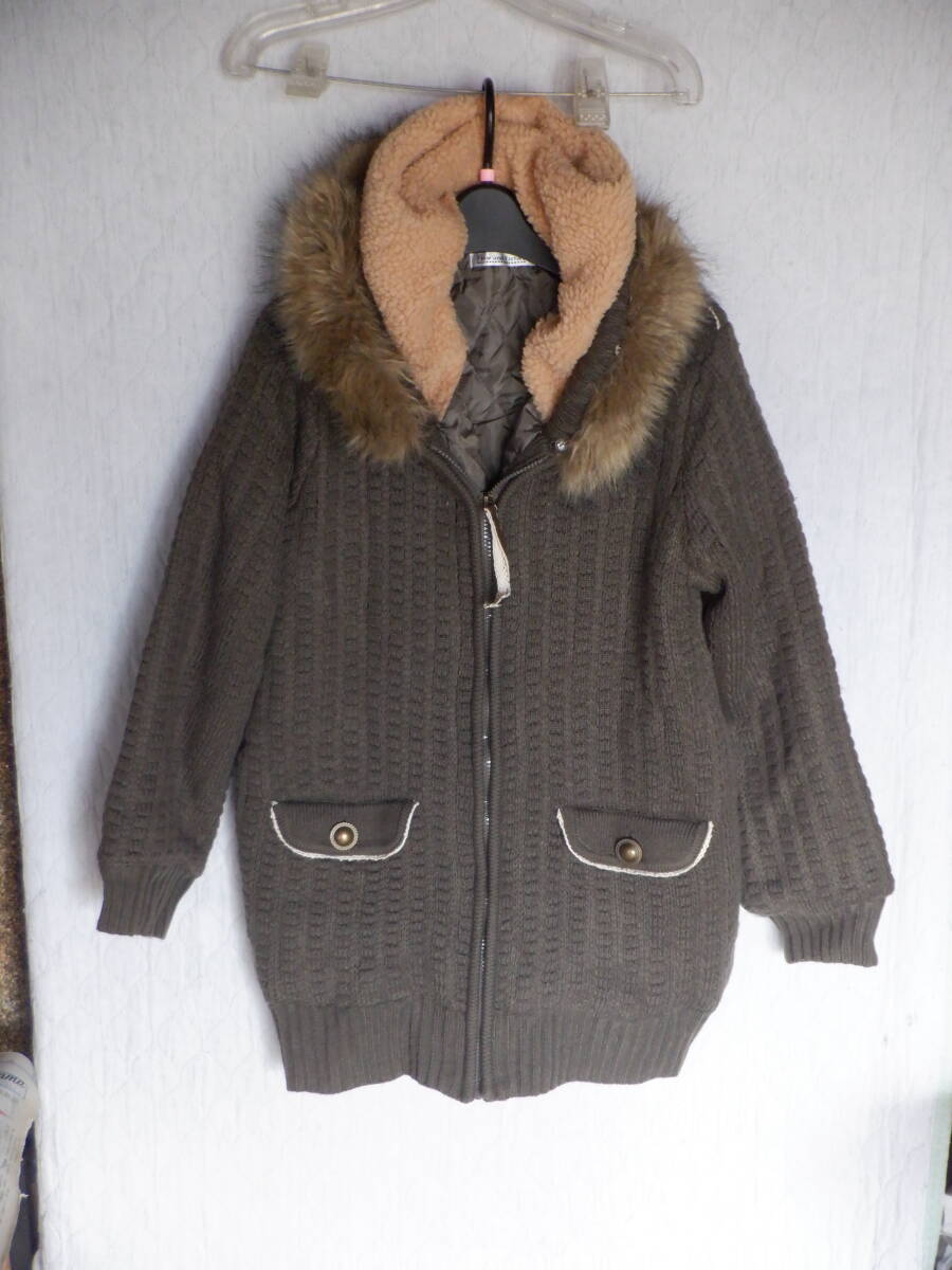 - Flow and Fixture 防寒ジャケット こげ茶色 分厚いニット キルティング 中綿入り 毛皮のエリ Mサイズ