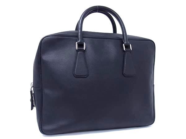 - 1円 PRADA プラダ 鍵付き サフィアーノレザー ハンドバッグ トートバッグ ビジネス 紳士 メンズ ブラック系 BN6060