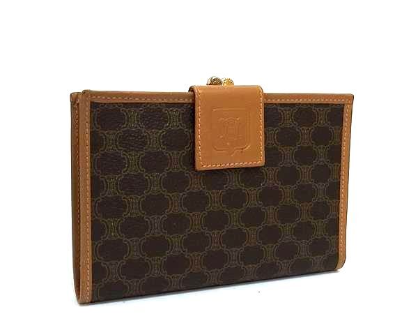 - 1円 ■美品■ CELINE セリーヌ ヴィンテージ マカダム柄 PVC×レザー がま口 二つ折り 財布 ウォレット 札入れ ブラウン系 FN7825