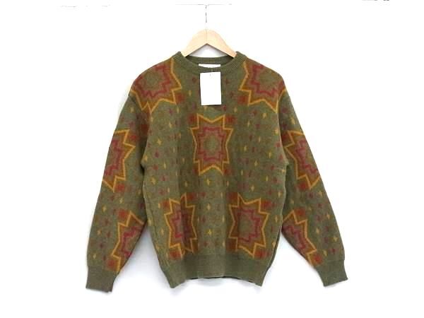 > 1円 ■新品同様■ GIVENCHY ジバンシィ ウール×アンゴラ×ナイロン 長袖 ニット セーター 洋服 グリーン系×ブラウン系 FP8785