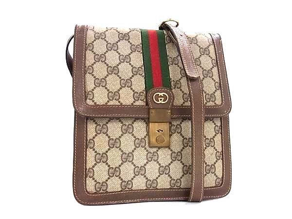 - 1円 GUCCI オールドグッチ ヴィンテージ シェリーライン GG柄 PVC ショルダーバッグ 肩掛けかばん レディース カーキ系 FP8743