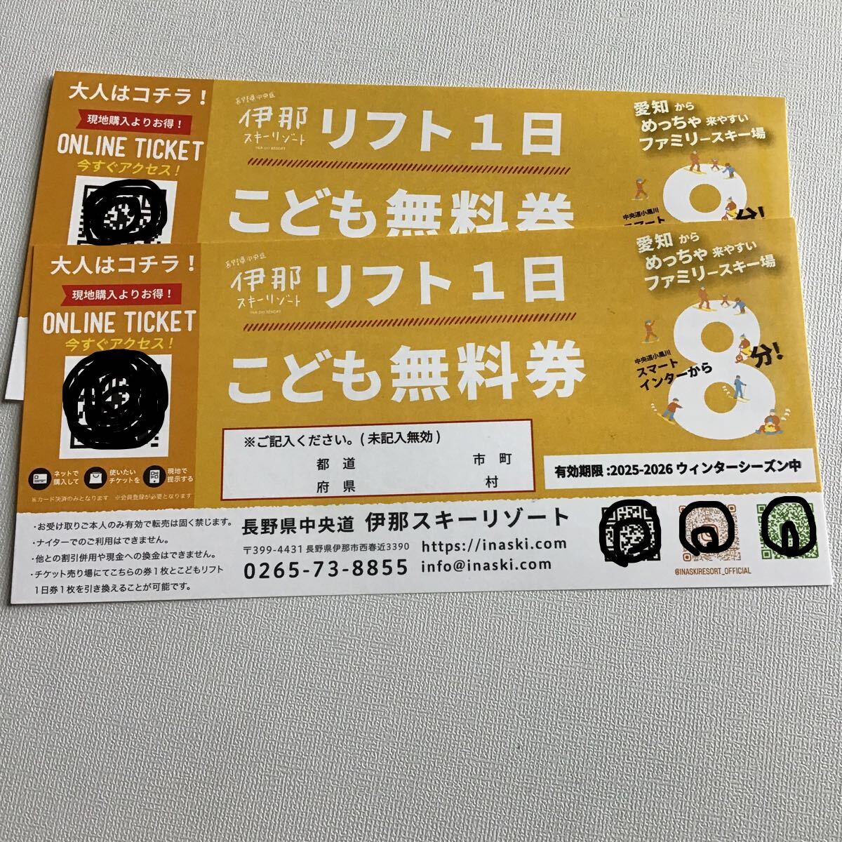 - 無料券 / 伊那スキーリゾート リフト1日 こども無料券 2枚セット / 長野県 スキー / 2025-2026ウィンターシーズン中 / スキー リフト券