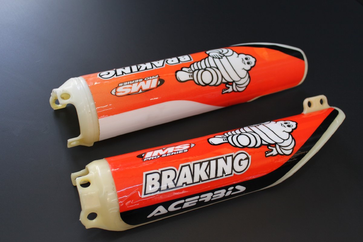 CR250R (JH2ME03A93M702***)のHRC製レーサーを街乗り仕様にした実動車から取り外しの純正フロントフォークガードセットの中古です。キズ、汚れ等ありますがワレ、曲がり等は無く使用可能品です。中古につきノークレーム、ノーリターンでお願いします。他にも同車種、その他車輌からの取り外しの部品を多数出品しますのでご覧ください。発送は 元払いにて発送いたします(落札後、ご計算致します。基本的にはヤマト運輸です。)200サイズを超えるものは佐川急便着払いにて発送致します。