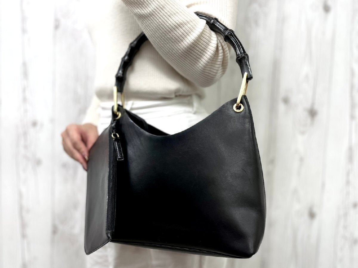 - 極美品 GUCCI グッチ バンブー ポーチ付 ハンドバッグ ショルダーバッグ バッグ レザー 黒 91720