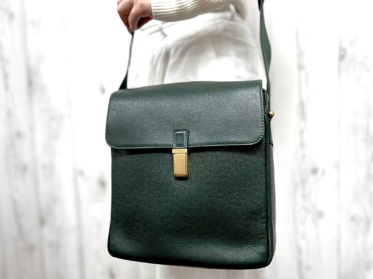 > 極美品 LOUIS VUITTON ルイヴィトン タイガ ヤランガ エピセア ショルダーバッグ バッグ M30824 レザー 緑 メンズ 91736