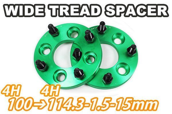 - 4H100114.3変換 ワイドトレッドスペーサー 2枚組 1.5 15mm 緑
