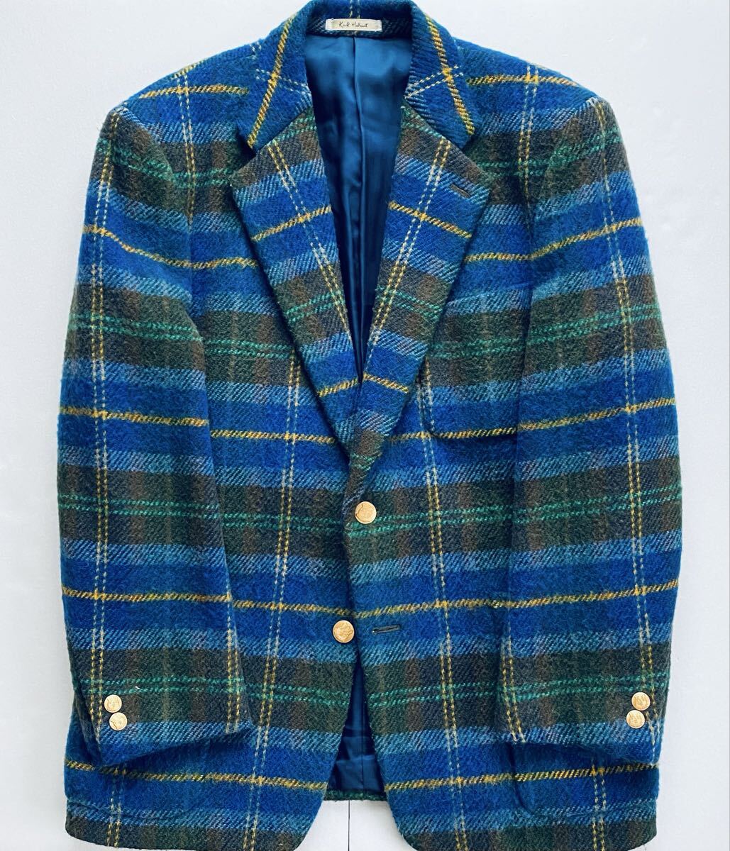 - 美品◆ビンテージ◆Karl Helmut カールヘルム 肉厚ウール ソフトツイードジャケット チェック柄 金ボタン ブレザー メンズ サイズS 実寸M位