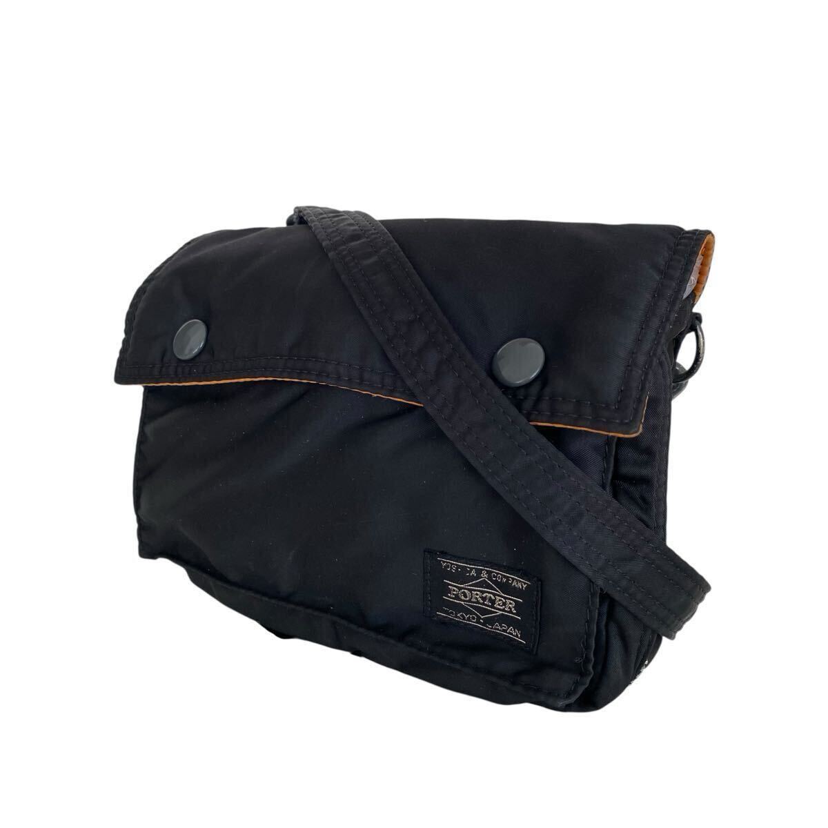 - 良品 ポーター PORTER タンカー ショルダーウォレット 財布 黒 ブラック 斜めがけ メンズ レディース ユニセックス