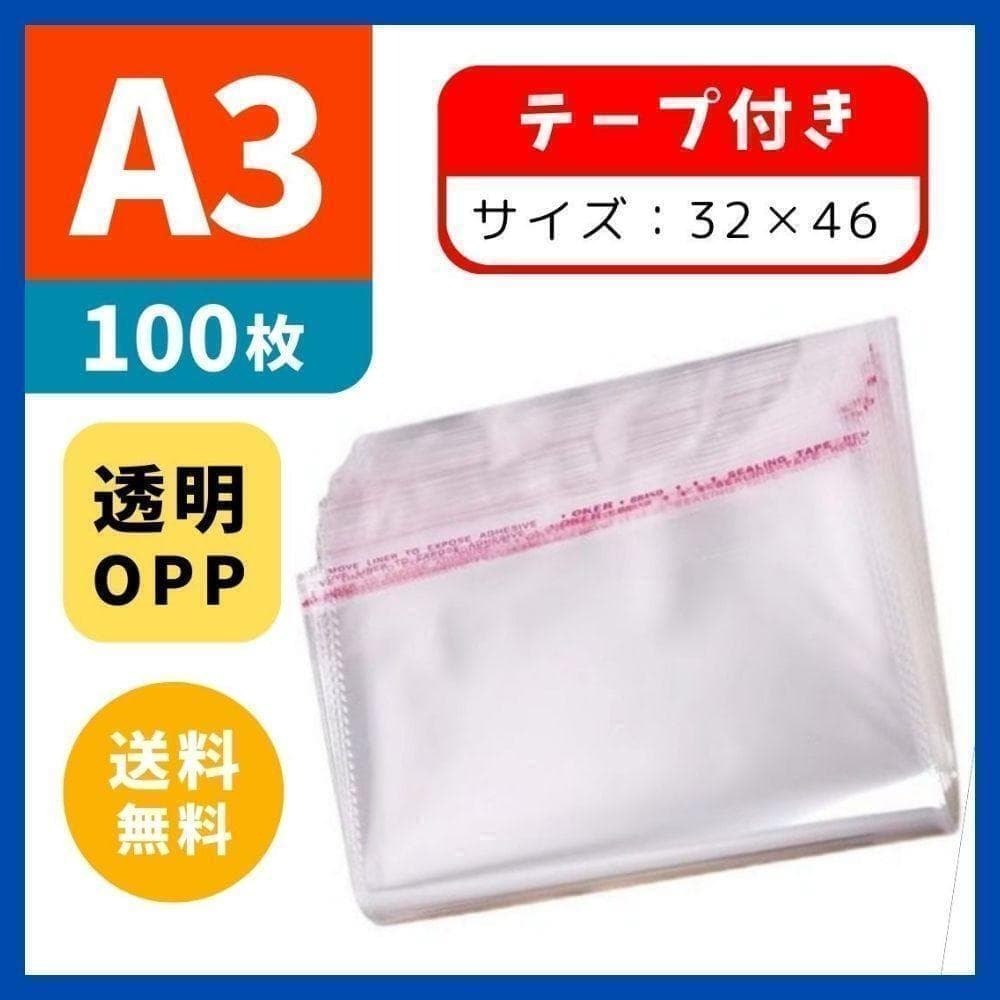 - ★大特価★ 3246 100枚 OPP袋 A3 テープ付 クリア袋 大 梱包袋 梱包資材 配送用梱包袋 防水 宅配ポリ袋 発送用 ビニール袋 郵便袋