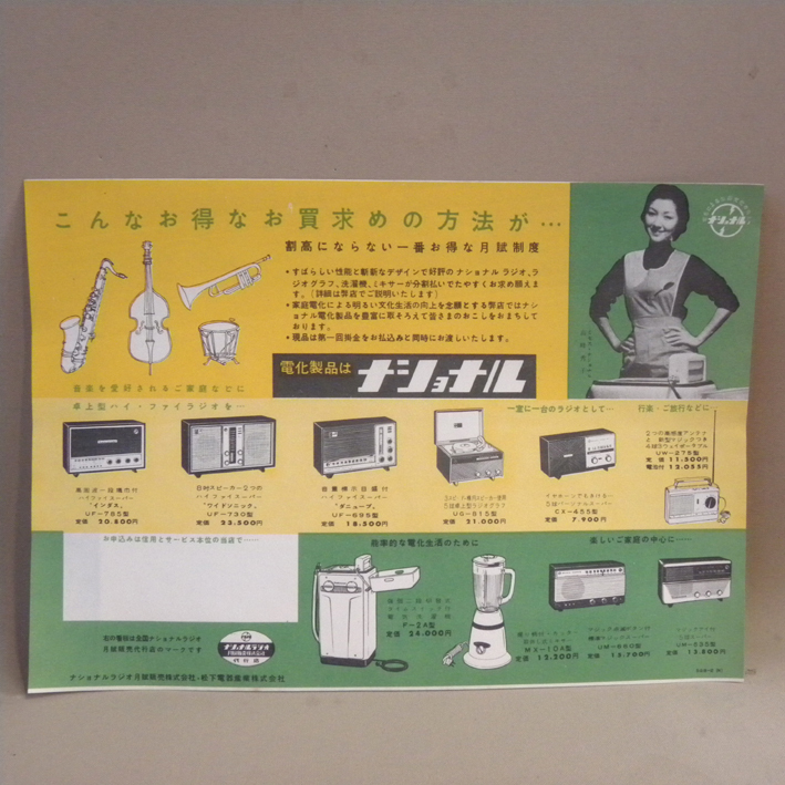 > 1950年代 当時物 松下電器 ナショナル ラジオ 洗濯機 チラシ 高峰秀子 h ( 古い 昔の ビンテージ 昭和レトロ 昭和家電 広告 宣伝 宣材 )