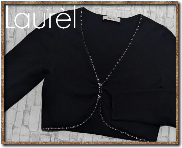 - ☆Laurel ローレル ラインストーン付きカシミヤ100%ボレロニットカーディガン 黒☆