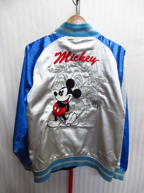 - ディズニー ミッキーマウス&ミニーマウス 刺繍デザイン スカジャン メンズM リバーシブル仕様サテンジャンパー キャラクター 11061