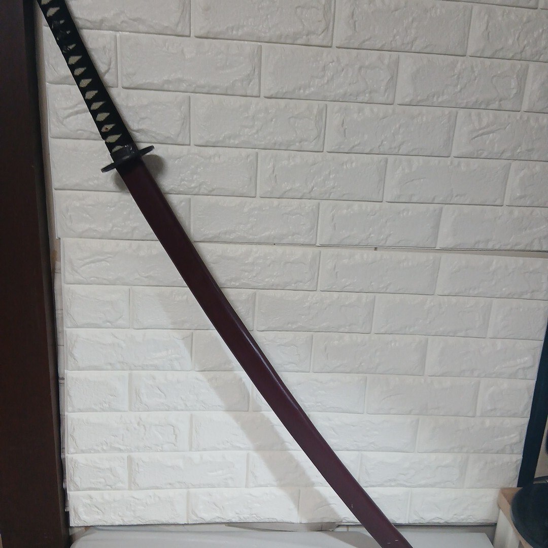 - 1竹光 打刀 赤鞘 桜透かし鍔 硬質木刀身 模造刀 武具 コレクション 太刀