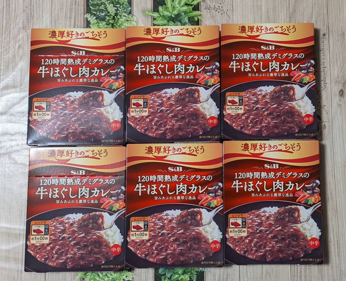 - S&B 濃厚好きのごちそう 120時間熟成デミグラスの牛ほぐし肉カレー 中辛 1人前150g 6箱 電子レンジで1分