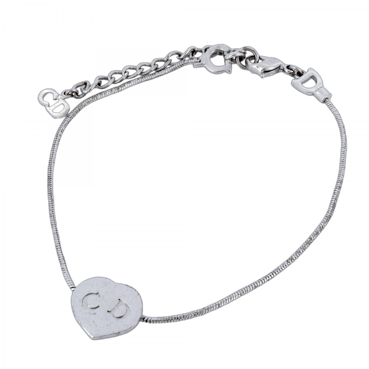> 【5jmb0795】クリスチャンディオール ブレスレット CDロゴ ハートモチーフ メタル シルバー【中古】レディース