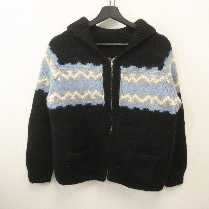 > R849 60sビンテージ カウチンニットセーター■1960年代製 約Sサイズ 黒 ブラック ウール FLASH フルジップ アメカジ 古着 古着卸 70s