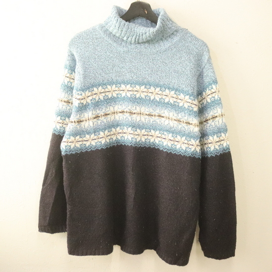> Z792 90sビンテージ タートルネック ノルディック柄 アクリルニットセーター■1990年代製 表記18サイズ アメカジ ストリート 古着卸 80s