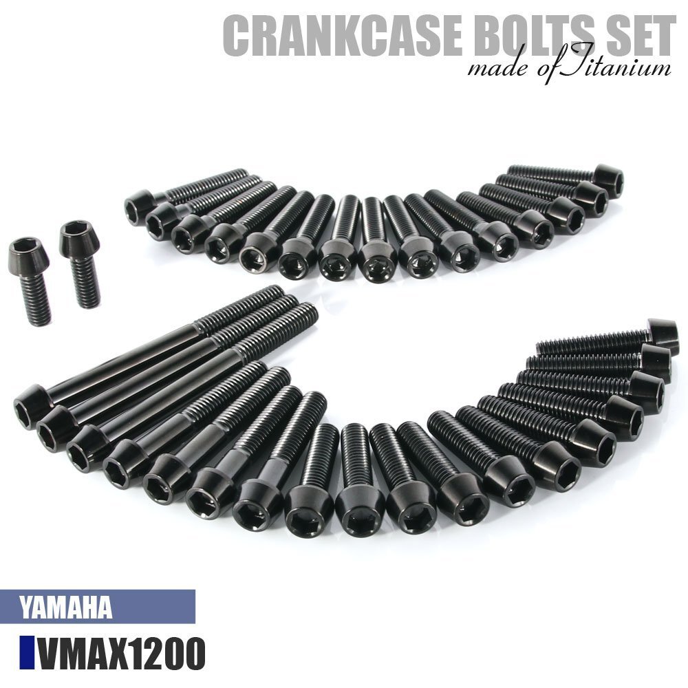 - チタンボルト ヤマハ VMAX 1200専用 VMAX12 クランクケース エンジンカバー ボルト セット 35本 ブラック 軽量化 カスタム チタン