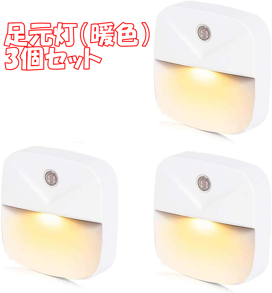- 【暖色3個セット】LEDナイトライト足元灯 常夜灯 明暗センサー コンセント暖色