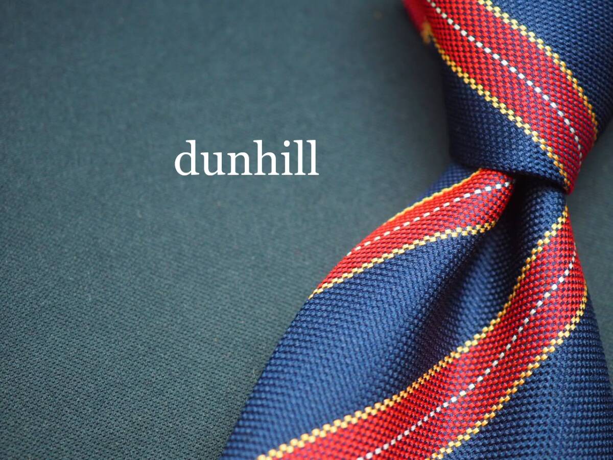 - 美品【dunhill ダンヒル】 G1438 英国製 赤ネイビー系 SILK ブランド ネクタイ 古着 良品 転売 仕入