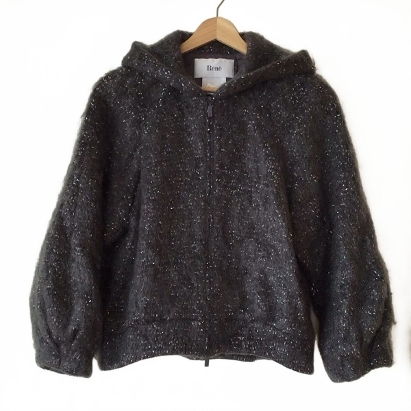 - ルネ Rene パーカー サイズ34 S - グレー×シルバー レディース 長袖/ジップアップ/グリッター トップス