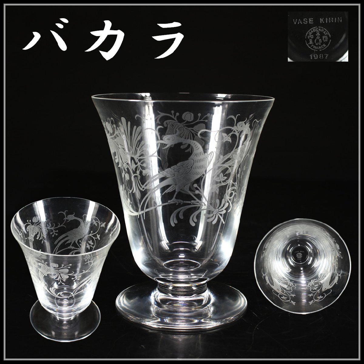- 【吉】PB527 Baccarat 【バカラ】 クリスタルガラス 花鳥紋 杯 花瓶 高17.7㎝/共箱付 美品Ig!