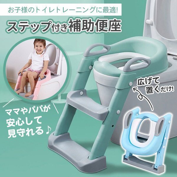 - 補助便座 おまる トイトレ 折りたたみ ステップ グリーン 子供 踏み台 トイレトレーニング 便座 補助 省スペース 洋式