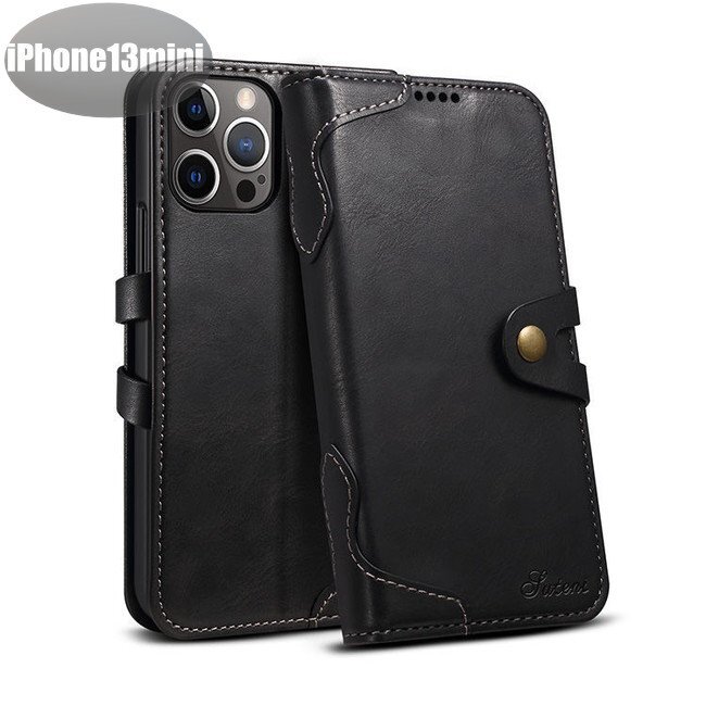 > iPhone13mini ケース PUレザー おしゃれ スマホケース スマホカバー ブラック 耐衝撃 衝撃吸収【n280】