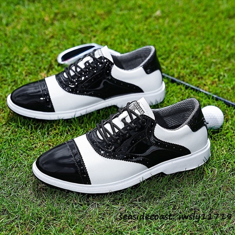 - 新品◆ゴルフシューズ スポーツシューズ メンズ 高級品 ソフトスパイク イギリス風 フィット感 防水 防滑 スニーカー 紳士靴 白*黒 27.5cm