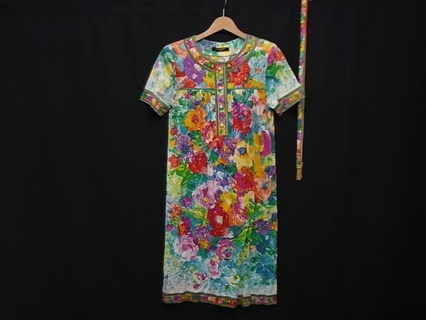 > 1円 ■美品■ LEONARD レオナール コットン100% フラワー 花柄 半袖 ワンピース 表記サイズM 洋服 レディース マルチカラー FP8758