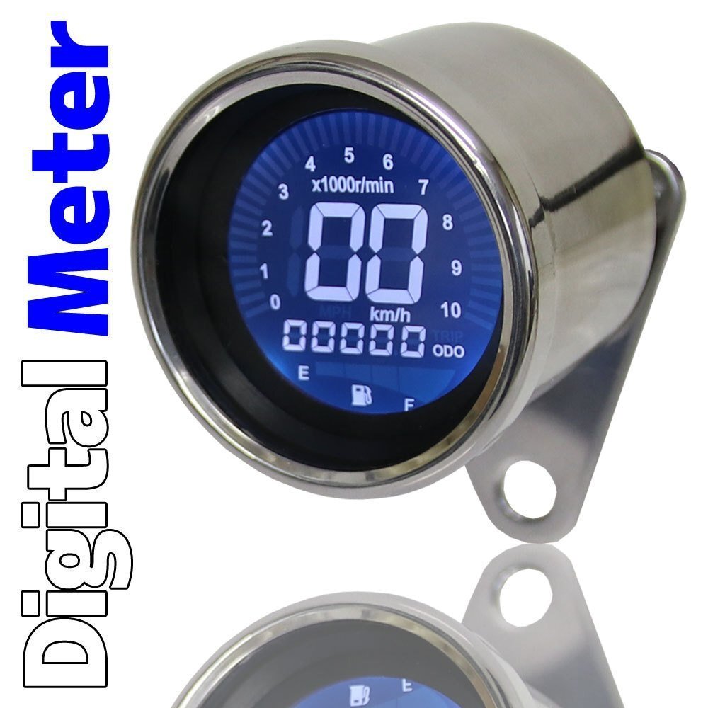 - 汎用 バイク用 12V 機械式 デジタル スピード タコ メーター 7色切替 LEDバックライト付 クローム エリミネーター エストレア ゼファー