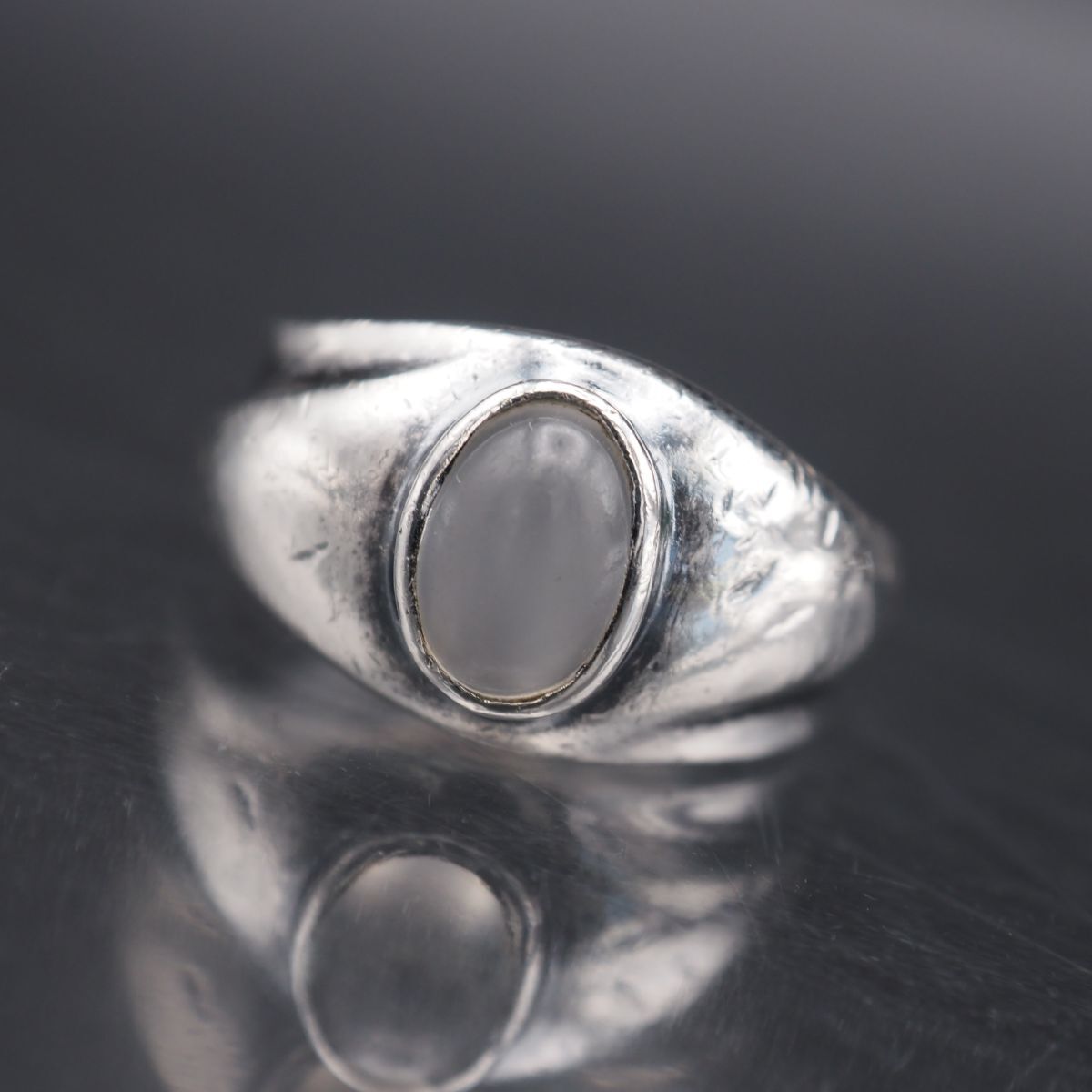> H772 キャッツアイストーン SILVER刻印 リング デザイン シルバー 指輪 ヴィンテージ 2月誕生石 12号