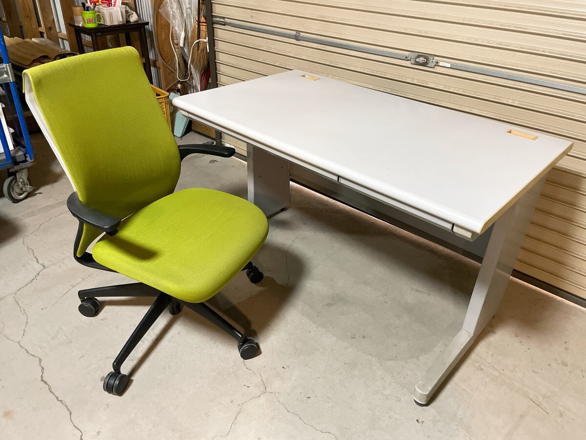 - 中古 平机 事務椅子 セット テーブル パソコンデスク 作業台 チェア 椅子 イス いす 事務所 店舗用品 茨城県常陸大宮 1111え2 M 家DC