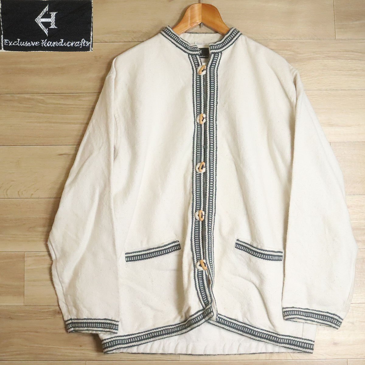 - C11R/R5.19-1 ネパール製 Exclusive Handicrafts バハシャツ ノーカラー コットン シャツジャケット ネイティブ柄 トグルボタン