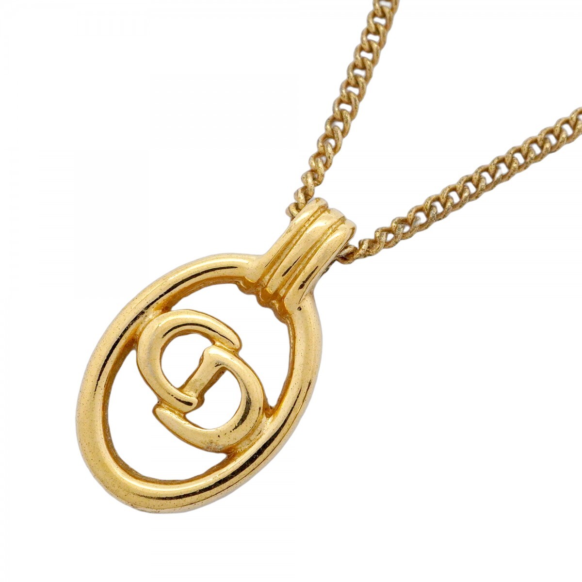 > 【5jmb0874】クリスチャンディオール ネックレス CDロゴ オーバル GPメッキ ゴールド【中古】レディース