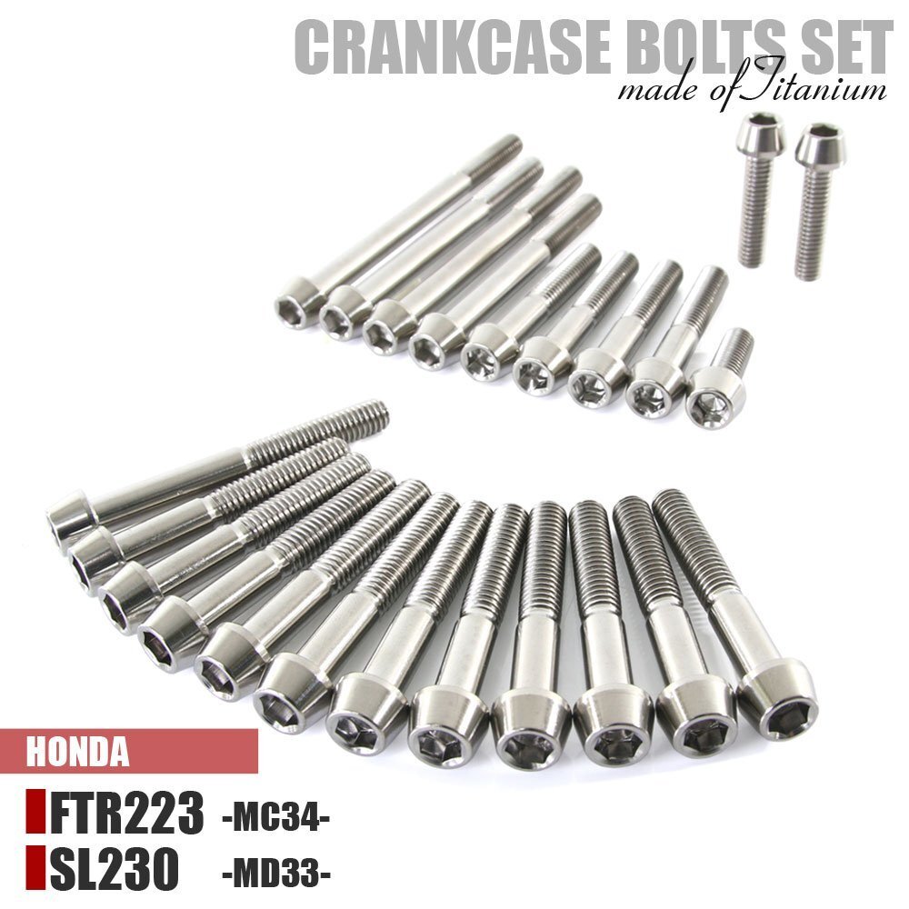 - チタンボルト ホンダ FTR223/SL230専用 クランクケース エンジンカバー ボルト セット 23本 シルバー 軽量化 カスタム チタン合金
