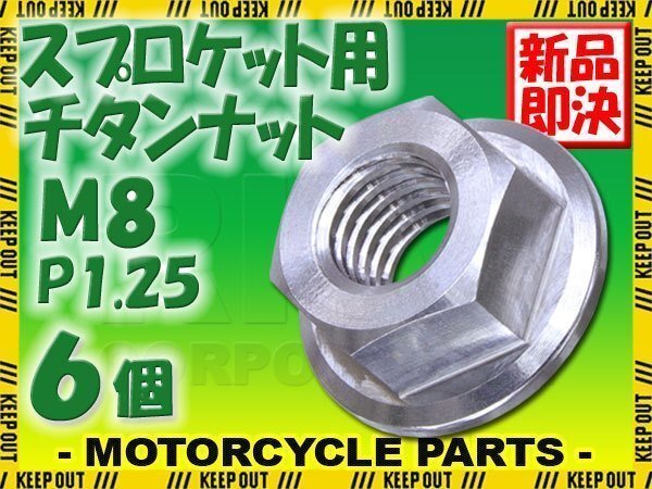 > メール便OK!M8 P1.25 チタンナット スプロケットナット 6個セット 六角ナット フランジナット シルバー ピッチ1.25 NSR250 YZF-R125
