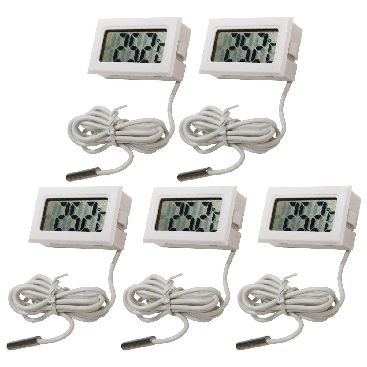 - 『5個セット』『水温系/温度計』デジタル式 熱帯魚 ミルク 冷蔵庫 室内 車内 水槽 タンク メダカ 金魚 101cm センサー 白
