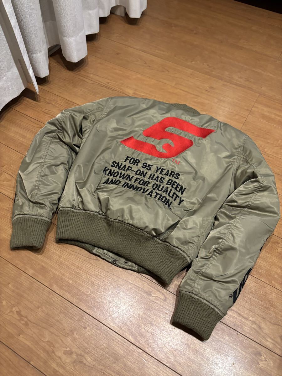 - スナップオン snap-on MA-1フライトジャケット ライダースジャケット カーキ Mサイズ 防寒 ブルゾン プロテクター入り