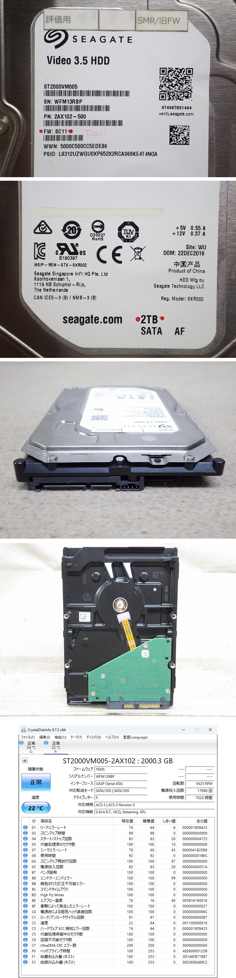 - Kネま2144 SEAGATE SATA 3.5インチ 内蔵HDD 2TB ST2000VM005-2AX102 パソコン周辺機器 PCパーツ ハードディスク