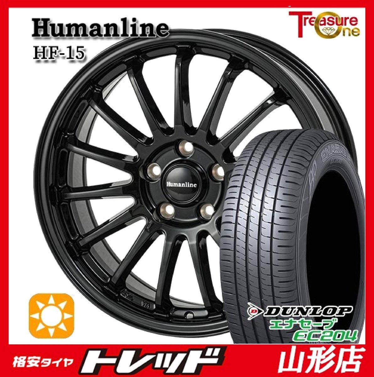 > 山形店 新品 タイヤホイールセット ヒューマンライン HF-15 16インチ 6.5j 5H114.3 +53 BK DUNLOP エナセーブ EC204 215/60R16 2024-25年製