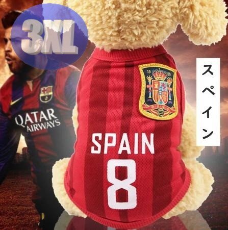 - ドッグウェア 春夏 スペイン 3XLサイズ サッカー 代表 ユニフォーム 犬服 中型犬 袖なし 通気性 柔らか 洋服 可愛い