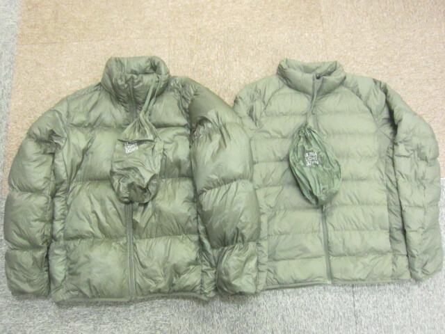 - ユニクロ ウルトラライトダウンジャケット 2枚セット メンズM カーキグリーン 軽量ダウンジャンパー ボリュームダウンウエア 防寒13009