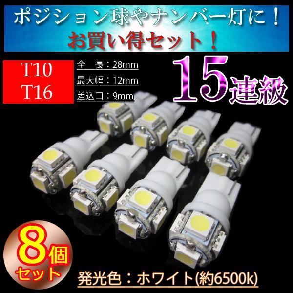- 8球セット T10 LED T16 LED ポジション ナンバー球 ドアランプ ルームランプ 室内灯 ポジション球 車幅灯 純白 LED 5050chip ホワイト