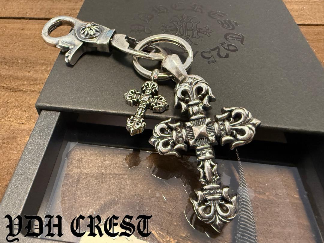 - ★YSSSZ シルバーキーチェーン 極太大小クロス兄弟デザインキーホルダー 刻印有り