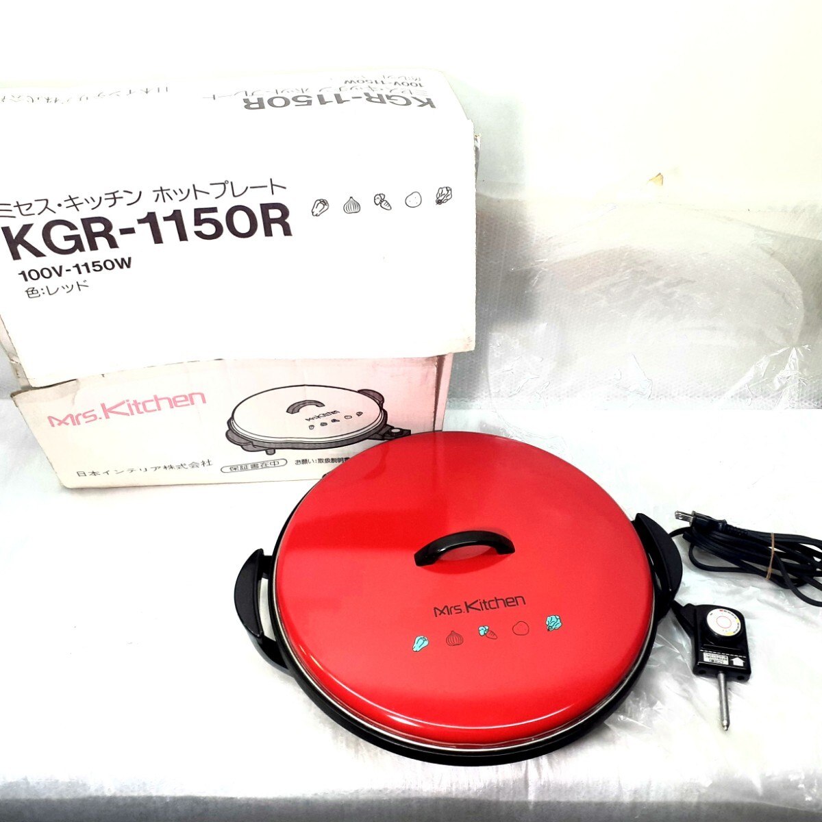 - ミセス・キッチン ホットプレート KGR-1150R レッド 1150W 日本インテリア株 中古 調理器具