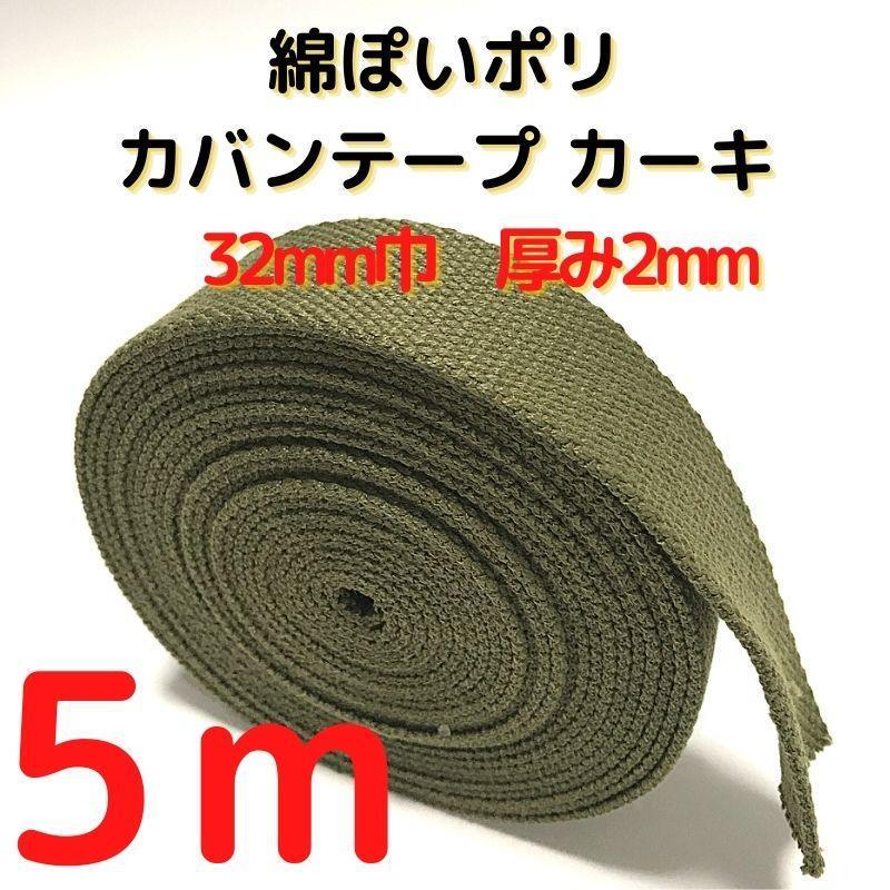 - カバンテープ32mmカーキ5M綿ぽいポリアクリルテープ風平織【KT32K5】