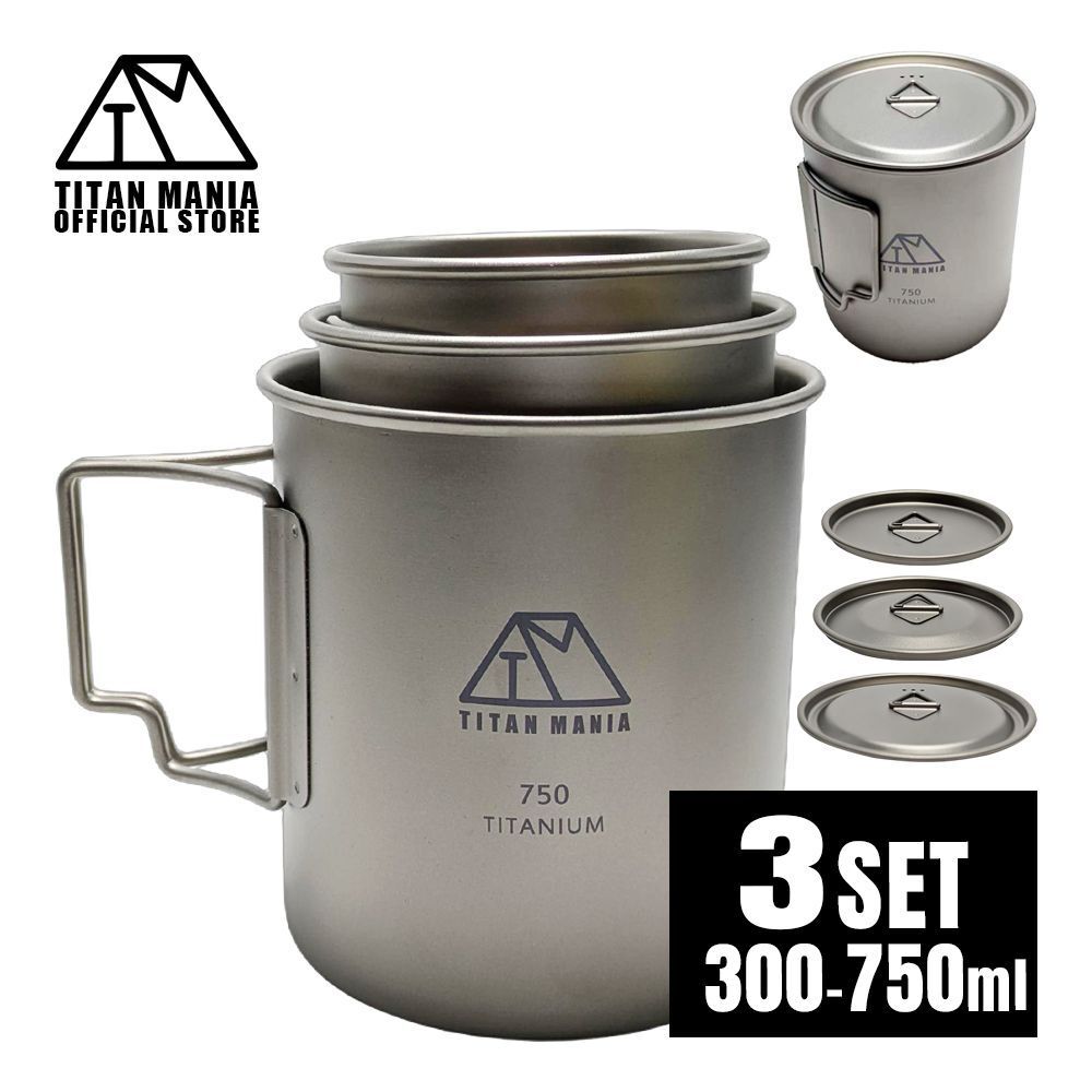 - TITAN MANIA チタンマニア マグカップ チタン製 蓋付き 300/450/750ml 3点セット 全てのサイズが蓋ごとスタッキング出来る titan2253